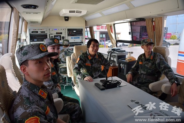 5月28日上午8时许,天水市人防机动指挥所指挥员正在下达演练任务。之后,市人防办党组成员、副主任王永第带领由2台专业车辆和8名干部职工组成的天水市人防机动指挥所,从秦州区政务中心楼前出发,精神抖擞、士气高昂地赶赴庆阳地区参加甘肃、宁夏两省区组织的“甘宁-2018”人防机动指挥通信跨区域支援联合训练。