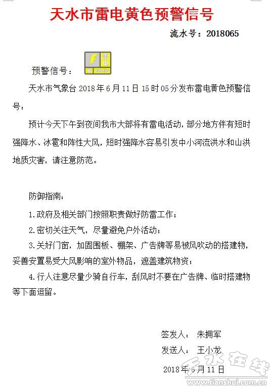 ·天水市气象台发布雷电黄色预警信号·天水市气象台发布高考期间天气预报