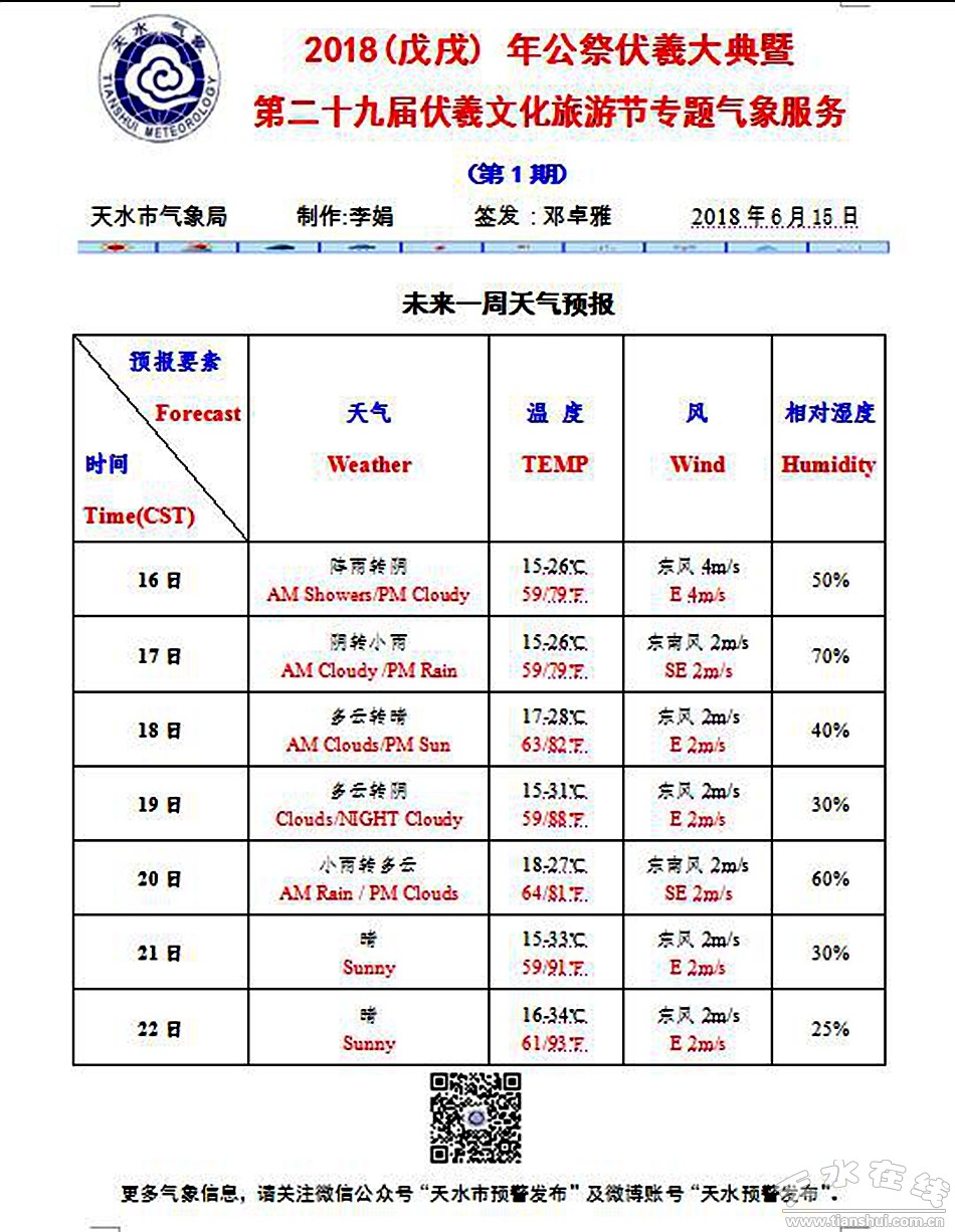 天水市气象局发布2018年节会专题气象预报(第一期)