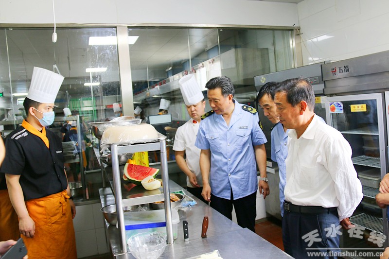 陈克孝一行先后深入皇城国际大酒店、飞天美居酒店、地质宾馆、新世纪滨河酒店等17家“节会”定点接待餐饮单位,及上亿广场士林不夜城、佳水岸小镇、天水商贸城会展中心等3条美食一条街,认真查看食品采购流程、食品库房管理、从业人员健康管理、加工环境、加工程序、凉菜制作、餐饮具清洗消毒、食品留样、废弃物收集处理等制度的落实情况,并查看了今年首次应用于“节会”餐饮服务食品安全保障现场的食品快速检测设备的使用情况,督促餐饮服务单位严格执行定点采购制度、索证索票和企业自查制度,严格执行食品加工各环节操作规程要求。检查过程中,对发现的问题及时指导企业进行了整改。