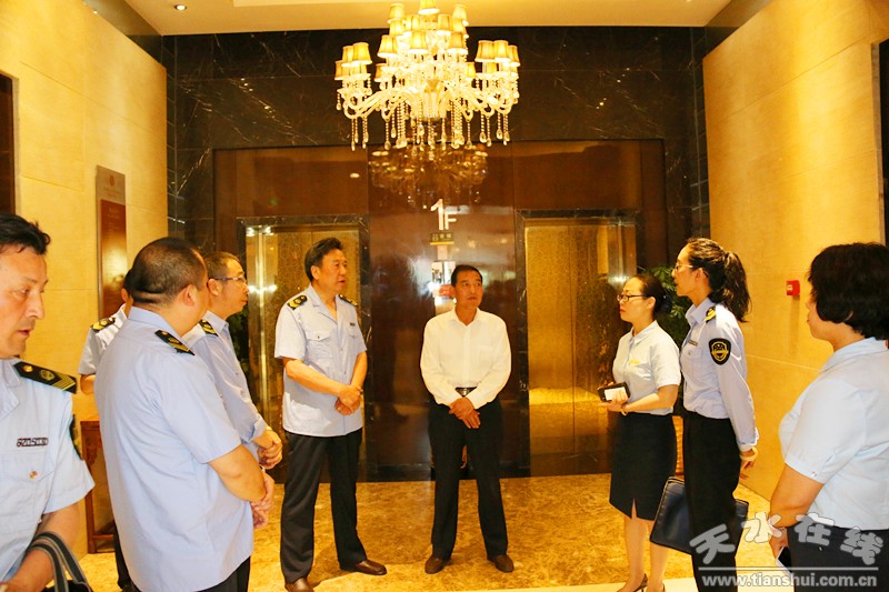 2018(戊戌)年公祭中华人文始祖伏羲大典暨第29届中国天水伏羲文化旅游节6月22在我市举办,为了做好“节会”餐饮服务食品安全保障工作,确保“节会”期间参会代表和广大群众的饮食安全,6月20日至21日,天水市食品药品监督管理局局长陈克孝带队督查了“节会”定点接待酒店餐饮服务食品安全保障工作,对驻点保障执法人员和定点接待餐饮单位保障工作提出了严格要求。