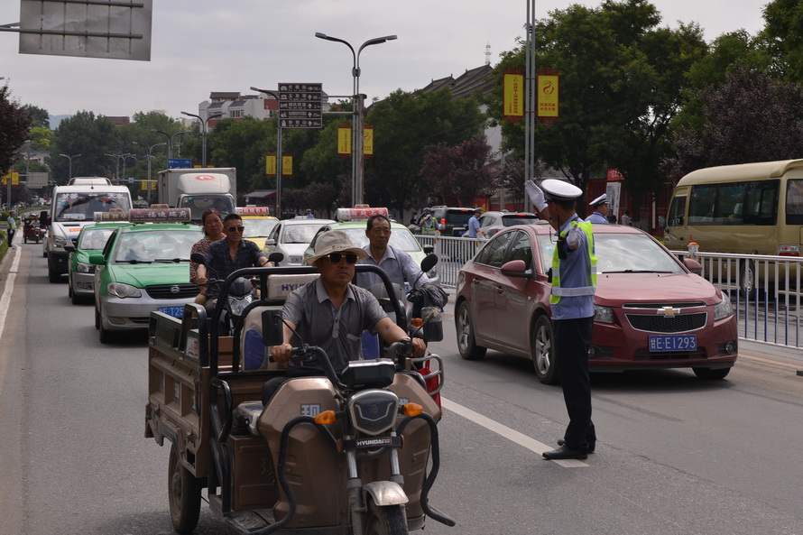 此次公祭伏羲大典活动规格高、来宾多,备受社会瞩目。为保证公祭伏羲大典顺利举行,天水公安交警部门出动600余名警力,以“伏羲广场”为核心圈,以秦州城区为内圈,以五县两区为外圈,采取远端分流、近端管控、核心区管制的勤务方式,扎实做好各项道路交通安全管理工作。