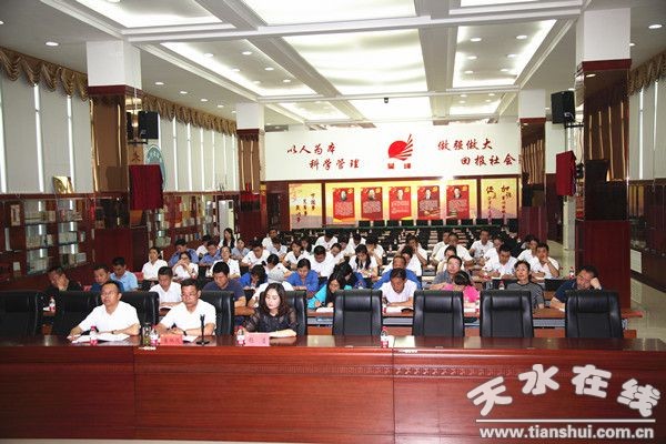 6月25日下午,天水市工商局党组副书记、市非公经济和社会组织工委副书记李新民走进非公经济企业,在昊峰集团控股有限公司多功能厅内,为昊峰集团、梓裕热力、新鸿源实业有限公司三个非公企业100余名党员上了一堂生动形象的党课,授课辅导由昊峰集团党委副书记、常务副总裁李旭茂主持。