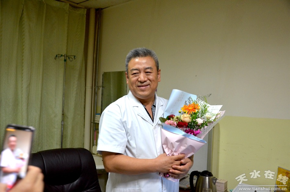 ▲向天水市中西医结合医院消化内科一病区、内分泌病科主任医师张和顺送上鲜花