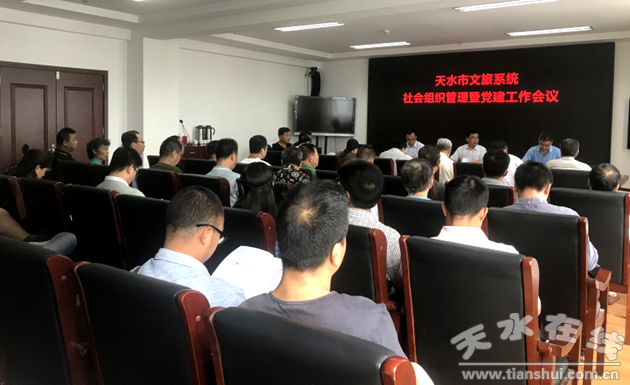 为深入学习贯彻习近平新时代中国特色社会主义思想和党的十九大精神,加强新时期社会组织的管理和党的建设,8月17日上午,天水市文旅局召开市直文旅系统社会组织管理暨党建工作会议。市直文旅系统的50家社会组织的负责人及局直属机关党委、人事科的负责同志,共计50余人参加了会议。