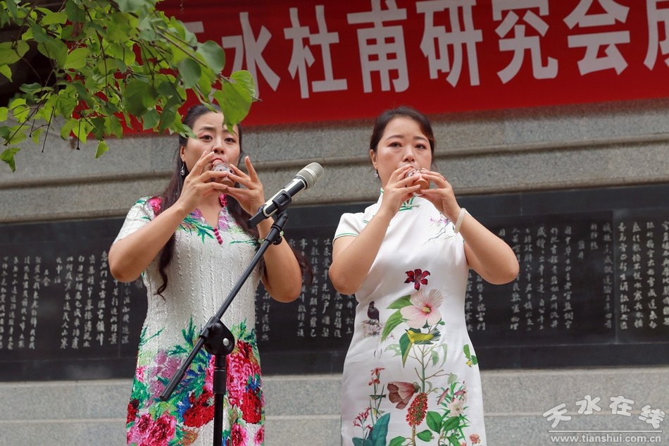 天水杜甫研究会成立于2006年8月,是由大专院校、专业研究机构和杜甫研究专家及爱好者组成的学术性社会组织,目前有会员近200名。研究会成立以来,在立足杜甫陇右诗研究的基础上,挖掘当地与杜甫诗歌文化和遗址保护有关的工作,推出了一大批文献资料和研究成果,先后出版了《杜甫秦州杂诗》《诗圣与陇右》《杜甫流寓陇右1250周年纪念专刊》《杜甫与陇右地域文化集》等专著与研究文集,为传统诗歌文化和地域文化在我市深入人心和宣传天水传统文化注入了新鲜活力。