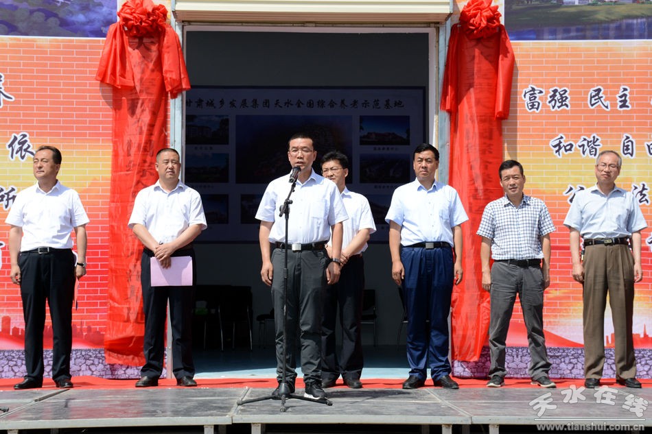 8月24日,麦积区全国综合养老示范基地项目举行揭牌仪式。甘肃省民政厅副厅长王福德,省城乡发展投资集团党委书记、董事长王明寿,省城乡发展投资集团党委副书记、总经理杨重存,天水市政府党组成员逯克宗出席揭牌仪式。