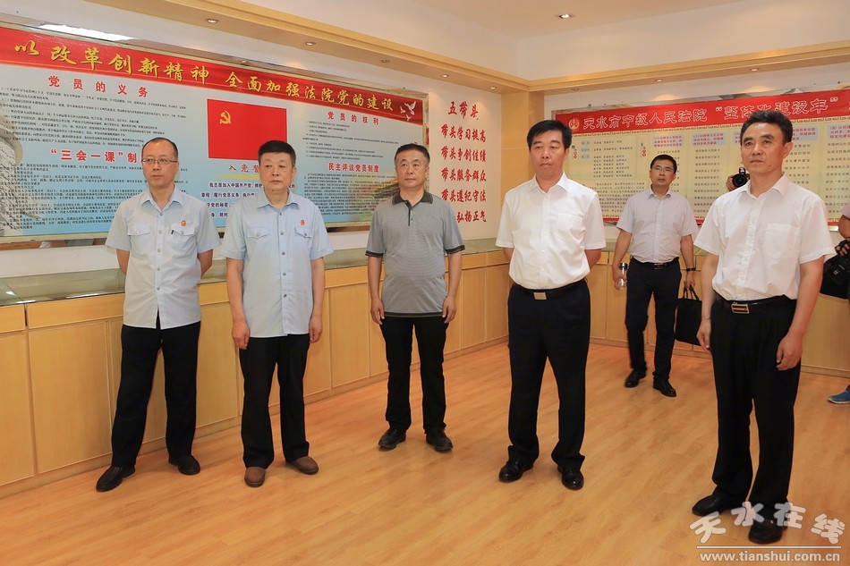 8月27日,省高级人民法院院长张海波来我市调研法院工作。他强调,要深入学习贯彻党的十九大精神和习近平新时代中国特色社会主义思想,牢固树立“四个意识”,推进司法体制改革,充分发挥司法职能,为天水经济社会发展提供坚强的司法保障。