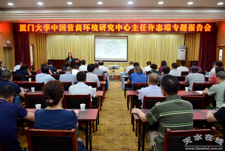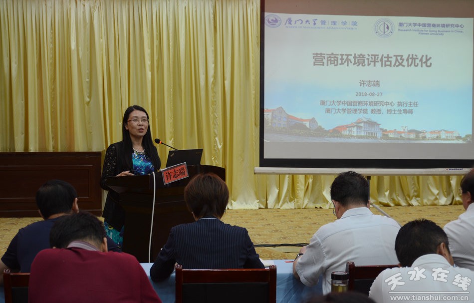会上,厦门大学管理学院教授、博士生导师、厦门大学中国营商环境研究中心执行主任许志端全面系统地介绍了世界银行的营商环境评估指标体系和评估办法,对天水市当前营商环境整体情况进行解读。