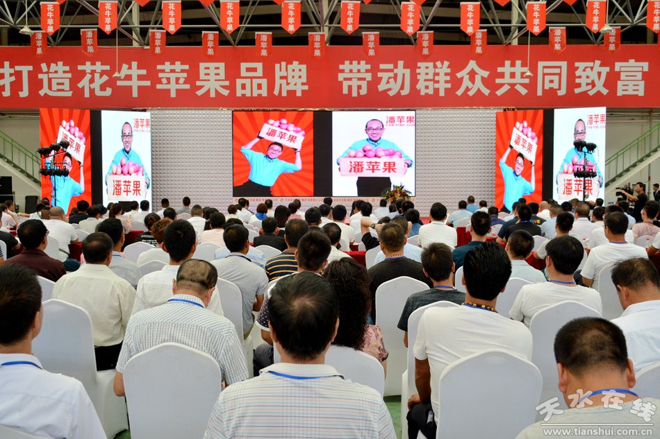 (8月28日,2018年天水花牛苹果集团新果上市助力脱贫攻坚暨全国线上线下各大友商签约合作发布会在天水花牛苹果产业园举行。)