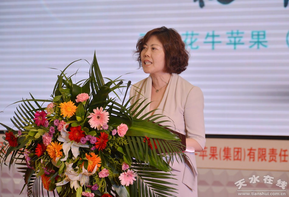 8月28日,2018年天水花牛苹果集团新果上市助力脱贫攻坚暨全国线上线下各大友商签约合作发布会在天水花牛苹果产业园举行。SOHO中国有限公司董事长、花牛苹果公益代言人潘石屹,市委常委、副市长王洪义出席发布会。
