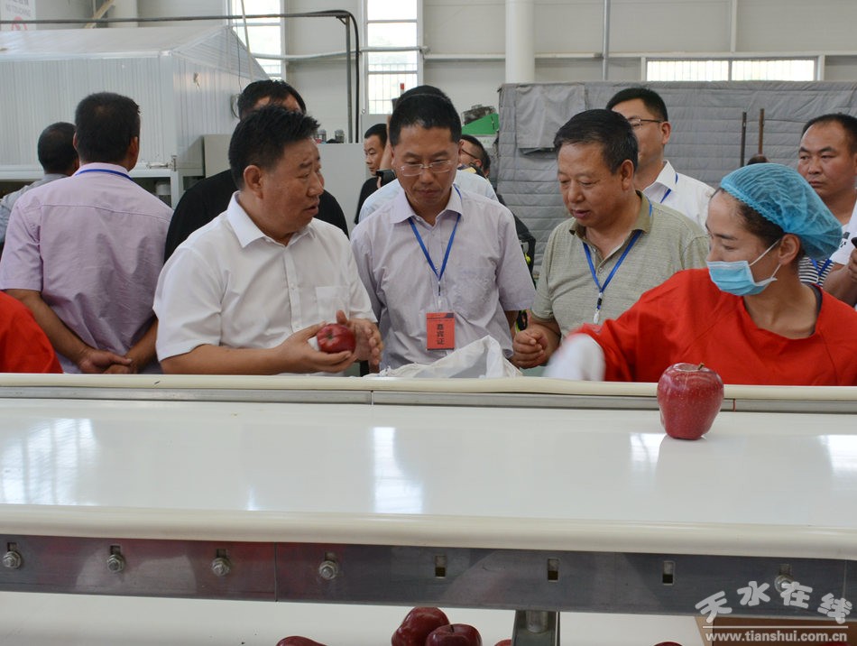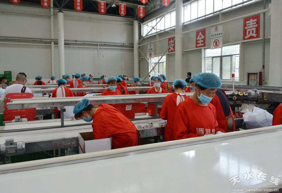 天水花牛苹果集团公司是一家集冷链物流和果品外贸,果品深加工、果筐生产为一体的农业产业化企业。近年来,该公司按照“公司+合作社+农户”的产业化运营模式,与麦积区的花牛、马跑泉、甘泉,秦州区的华岐等乡镇的1000多农户建立苹果基地1万多亩,辐射带动13000户农户从事苹果种植。预计今年果品销售量为2000万斤,果季销售收入达2.4亿元。