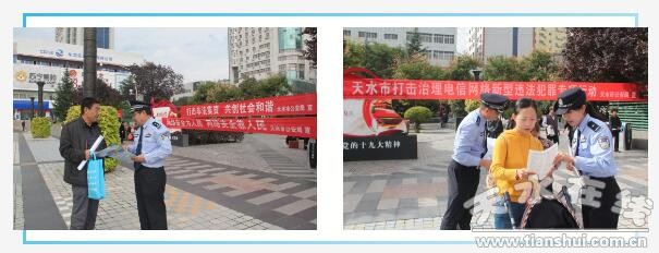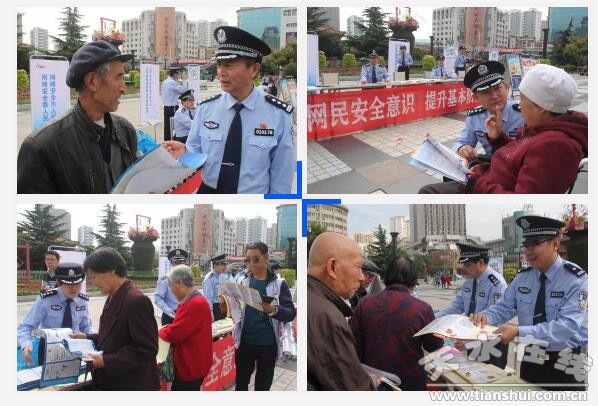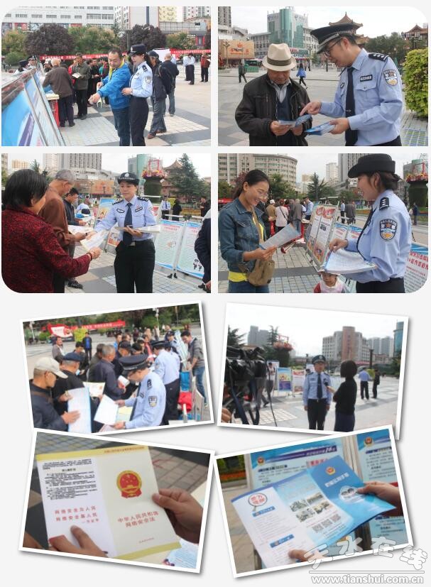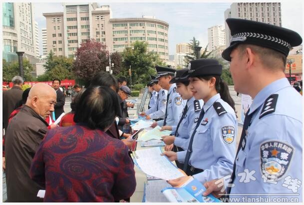 9月20日,按照上级统一安排部署,天水市公安局联合秦州公安分局,组织网安、刑侦、经侦、宣传等部门民警,在秦州区龙城广场组织开展了网络安全宣传周法治日集中宣传活动,通过现场宣讲、媒体专访等形式,呼吁全市人民共同守护网络安全、呵护精神家园。