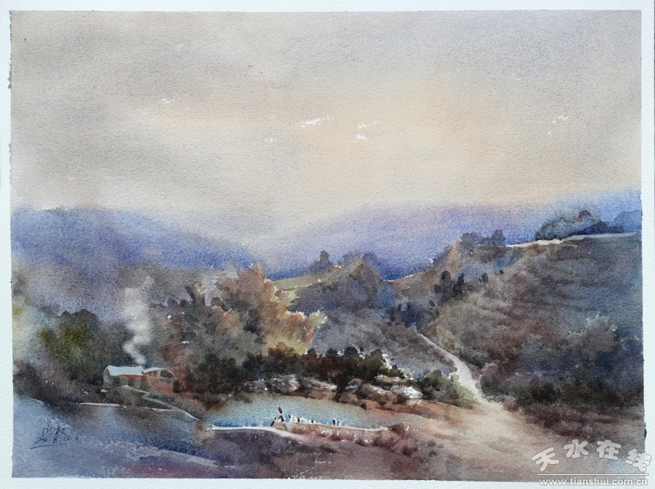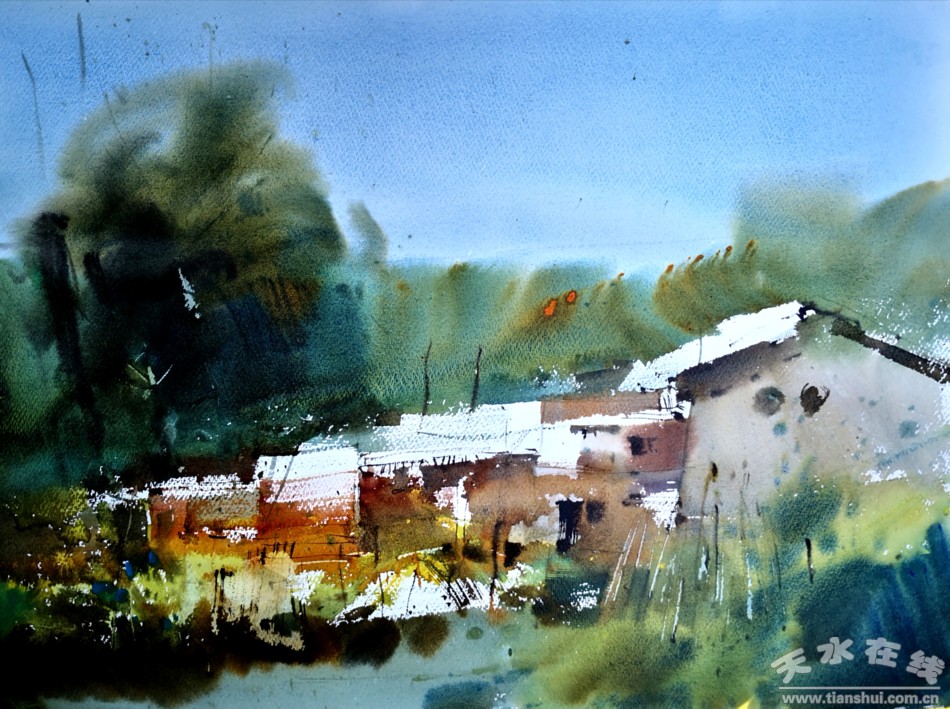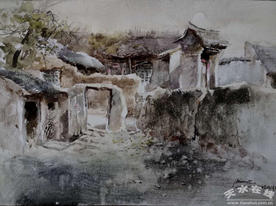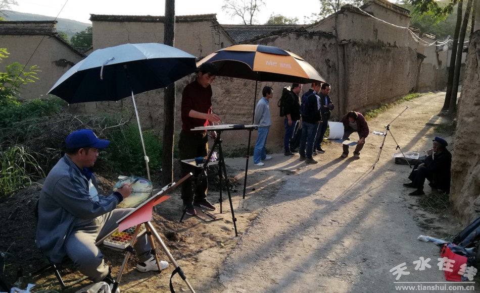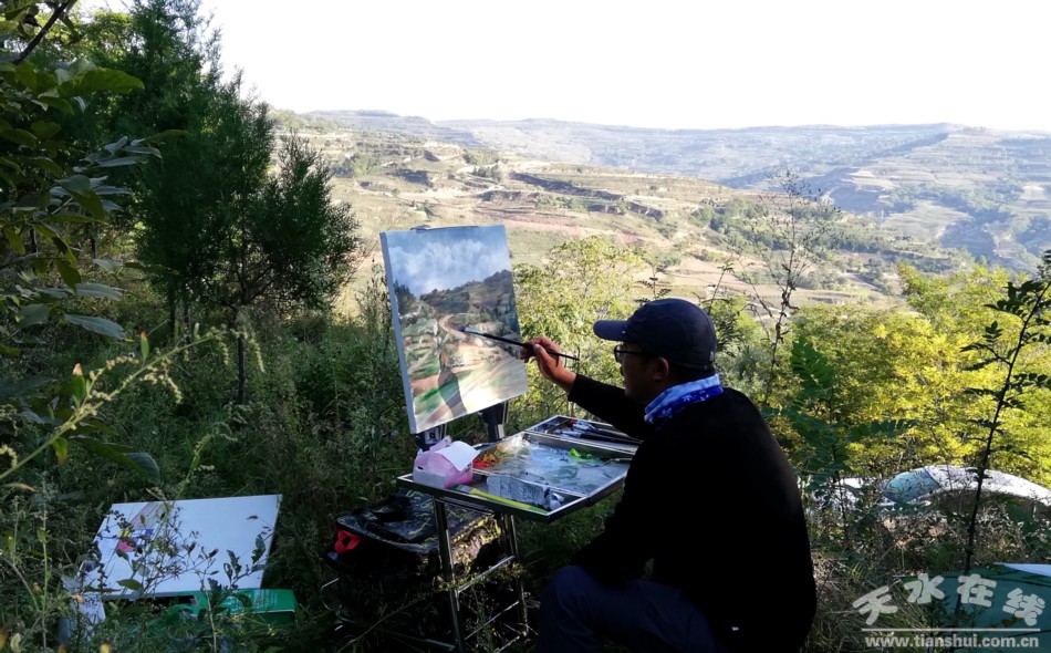 (画家在清水县郭川镇麦峪村写生的水彩画作品)