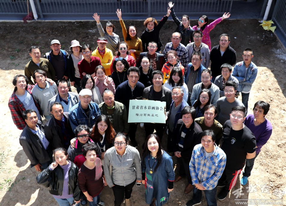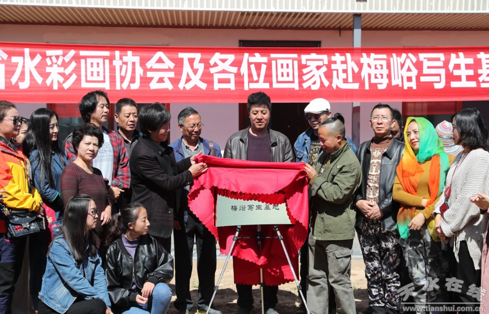 (甘肃省美术家协会水彩画艺委会、甘肃省水彩画协会为梅峪写生基地揭牌。)