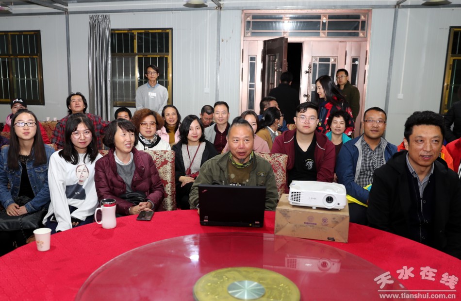 (水彩画大家王明华老师晚上在基地进行讲座交流。)