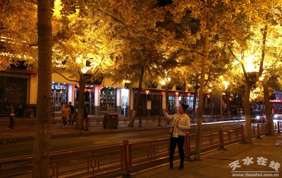 10月29日,升级完毕的天水“黄金大道”亮起来了,金黄的银杏树叶、如梦如幻的灯光效果、驻足观赏拍照的市民……一场盛大的城市狂欢拉开了序幕。(兰州晚报记者哈丽娜)