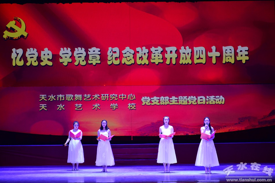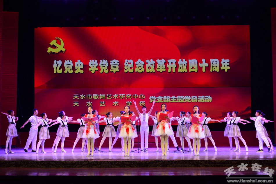活动方案下发后,中心各科室认真准备,发挥我中心的特色,组织了一台形式多样的诵读比赛。2018年11月2日下午,活动在秦州剧院拉开帷幕,中心全体党员、干部职工、艺校全体学生参加了此次“主题党日活动”,活动还有幸邀请到天水市文旅局党组书记、局长李玉进同志观看。