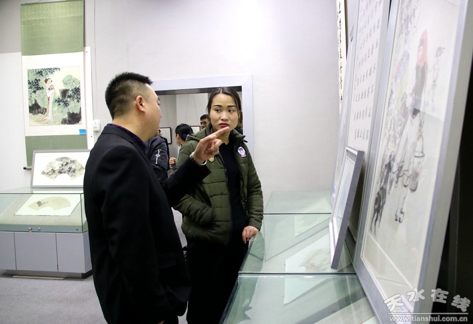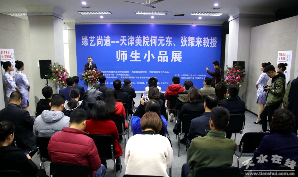 11月18日上午,缘艺尚道——天津美院何元东、张耀来教授师生小品展在天水金龙大酒店三楼天水华夏艺术馆开展。