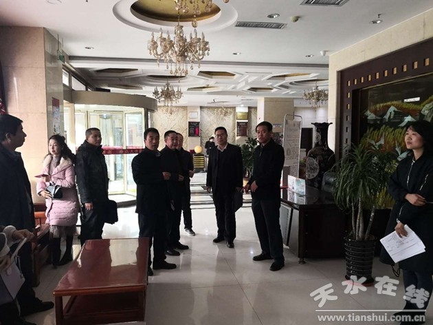李尚平一行对照《天水市商贸流通行业创建全国文明城市工作实施方案》,从酒店、商场外立面到内部,对宣传栏设置、垃圾分类及责任分工、制度建立等软硬件设施进行了详细的检查。
