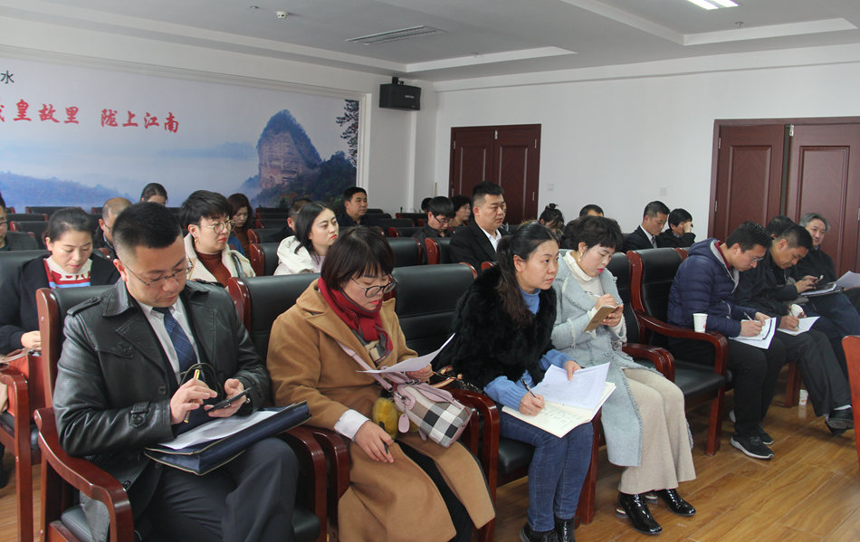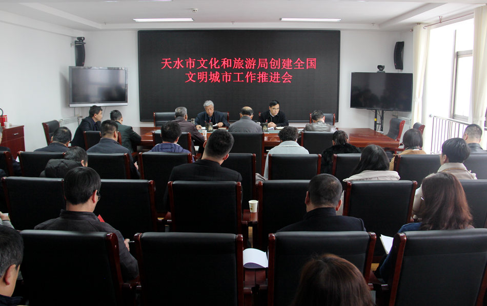 为全面贯彻落实全市创建全国文明城市工作推进会议精神,11月29日,天水市文化和旅游局召开创建全国文明城市工作推进会暨实地考察点任务分解协调会,市文化和旅游局党组副书记魏国柱,市文化和旅游局党组成员、副局长高宇锋,秦州区、麦积区文广局(旅游局)分管领导,相关直属单位分管负责人,局机关相关科室负责人,部分景区、新华书店及秦州辖区内的部分星级宾馆(饭店)相关负责人等共计40余人参加了此次会议。