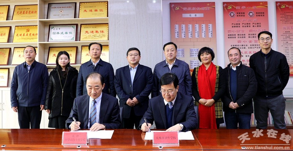 据了解,此次签约旨在贯彻落实《教育脱贫攻坚“十三五”规划》和《教育部 国务院扶贫办关于印发〈职业教育东西协作行动计划(2016-2020年)〉的通知》、《教育部办公厅 国务院扶贫办综合司关于印发〈贯彻落实职业教育东西协作行动计划(2016-2020年)实施方案〉的通知》、甘肃省人民政府天津市人民政府联合印发《关于全面深化区域合作发展的意见》,积极推动天津医学高等专科学校对口帮扶甘肃省天水市卫生学校,成立天津医学高等专科学校天水分校,在学校发展、重点专业建设、高层次人才培养、教师进修学习、重点实验室建设、联合开展科学研究等方面提供支持。