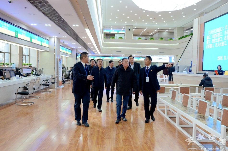 12月7日,天水市委书记王锐深入市政务中心就政务运行和机关事务管理情况进行调研。他强调,市直相关部门要牢固树立以人民为中心的发展思想,强化服务意识,认真履行职责,进一步提高办事效率和公共事务服务水平,不断推动政府治理体系现代化建设。
