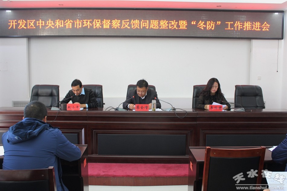 12月17日,天水经济技术开发区召开了中央和省市环保督察反馈问题整改暨“冬防”工作推进会。会上,开发区环保分局局长李怡君同志通报了天水市第二环保督察组关于天水经济技术开发区生态环境保护督察情况的反馈意见;宣读了天水经济技术开发区贯彻落实各级生态环境保护督察反馈意见整改责任清单;管委会副调研员赵小平同志重点就进一步做好开发区中央和省市环保督察问题整改暨“冬防”工作,从以下三个方面做了安排部署: