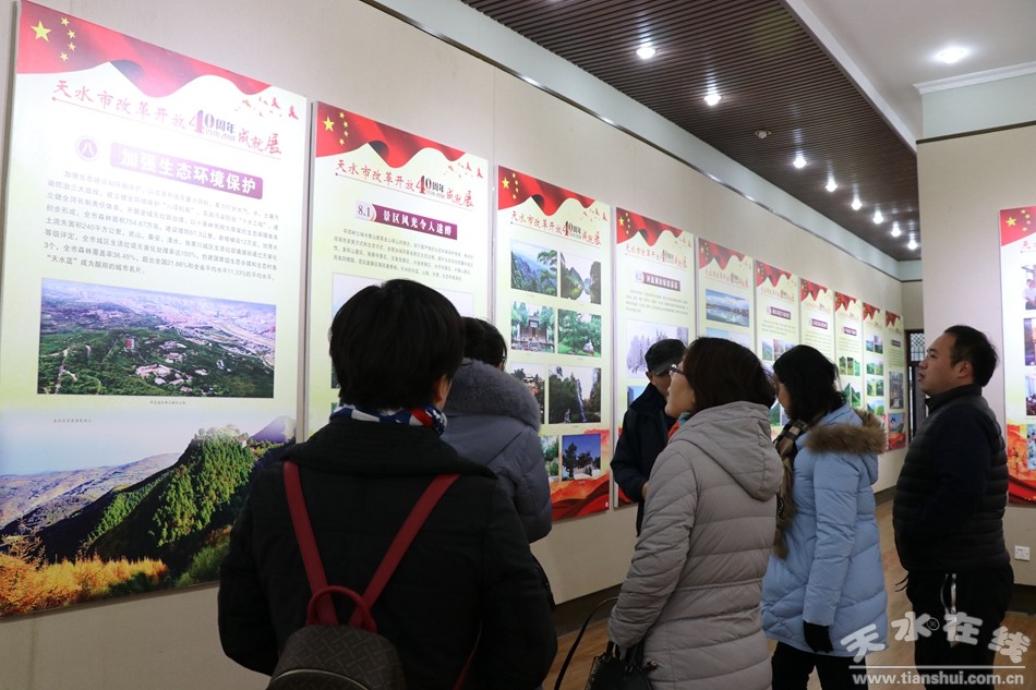 近日,天水市环保局组织干部职工在市文化馆参观了天水改革开放四十周年图片展。