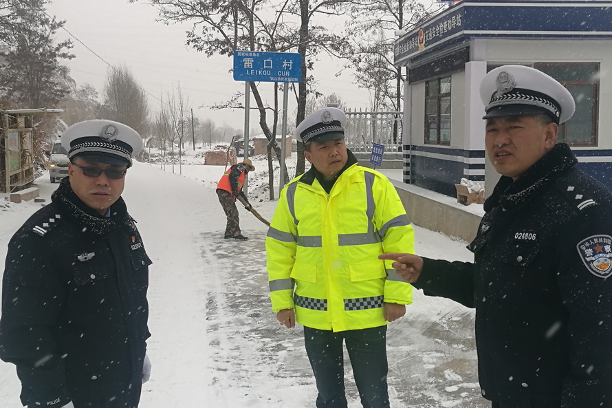 (市公安局党委委员、副局长霍宝珊雪天检查道路交通安保情况)