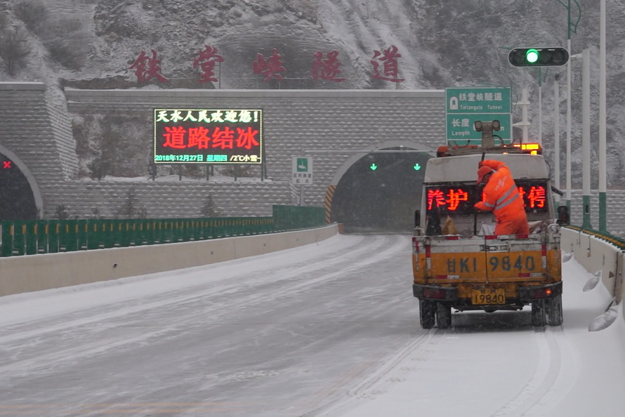 12月27日,天水气象台发布道路结冰黄色预警信号。从中午开始,我市大部分地区出现小到中雪,局部大雪。针对此次降温降雪天气,副市长、市公安局党委书记、局长马瑛和副局长霍宝珊分别作出批示指示,要求积极应对冰雪天气对道路交通安全的影响,确保道路安全畅通。为认真贯彻落实领导批示精神,确保冰雪恶劣天气条件下的道路交通有序、安全、畅通,全市各级公安交警部门迅速采取有力措施,加强交通疏导管控,全力做好降温降雪恶劣天气交通安全管理工作。截止目前,全市共出动警力 640余人次,警车152余台次,及时分流疏导车辆15600余辆次,全市未发生因冰雪天气造成的车辆严重滞留拥堵路段,未发生亡人道路交通事故。