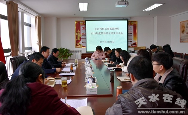 按照天水市纪委、天水市委组织部《关于认真开好2018年度县以上党和国家机关党员领导干部民主生活会的通知》要求,2019年1月18日,天水市机关事务管理局组织召开了2018年度局领导班子民主生活会。市政府机关党组派市政府机关党委委员指导会议,局领导班子成员参加会议,各科室负责人及党员列席会议。
