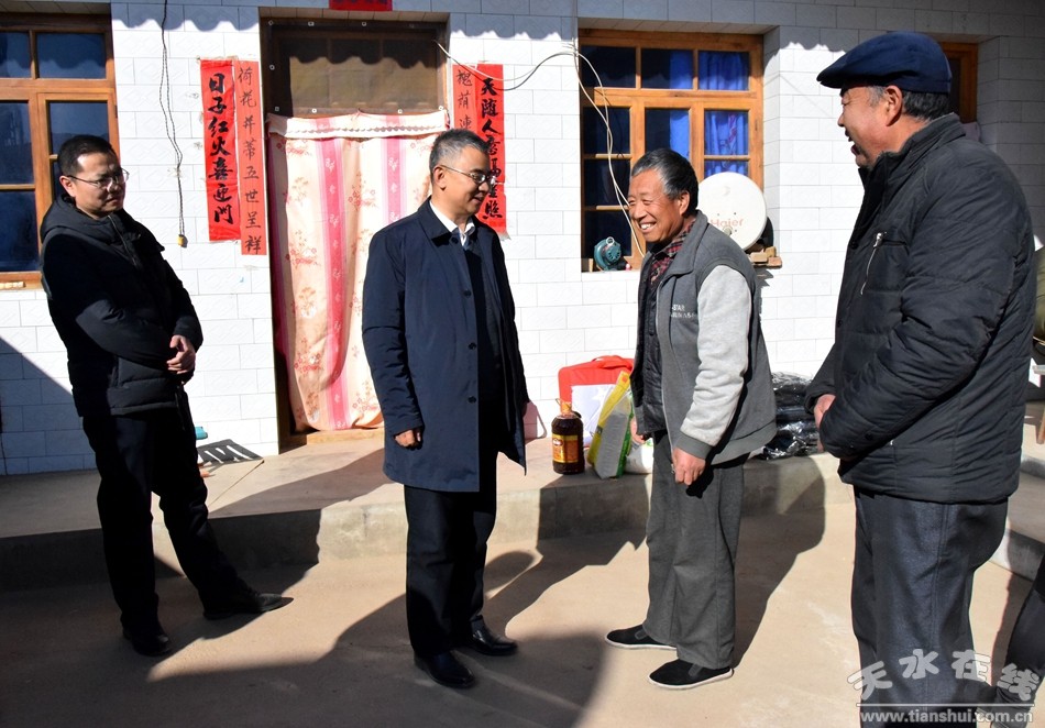 1月22日,天水市委常委、常务副市长赵四辈带领相关部门负责人,赴秦安县帮扶联系点,开展春节前走访慰问活动,为低保户和贫困户们送去慰问品以及新春的祝福。