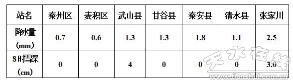 【摘要】受高原暖湿气流影响,1日白天至夜间我市出现大范围雨雪天气,部分乡镇出现中雪。最大降雪量出现在张家川,为2.5mm,最大积雪深度3cm。此次雨雪过程有利于改善空气质量、降低森林草原火险等级、提高土壤墒情,但对交通运输和设施农业有不利影响。