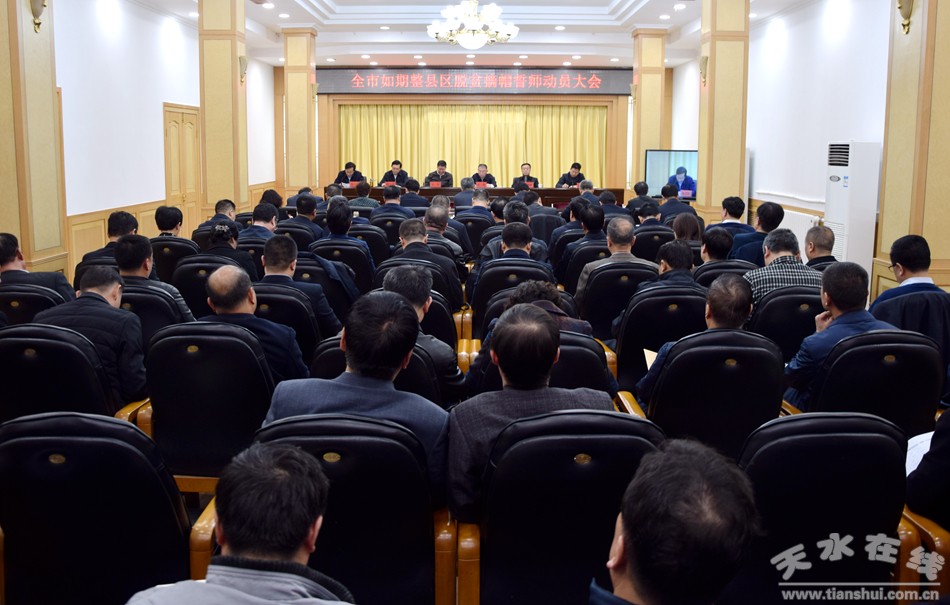3月4日,天水市委、市政府召开全市如期整县区脱贫摘帽誓师动员大会,市委书记王锐出席会议并讲话。他强调,全市上下要以只争朝夕的状态、敢死拼命的精神、志在必胜的决心,打赢打好脱贫攻坚这场硬仗,确保如期实现脱贫摘帽目标。