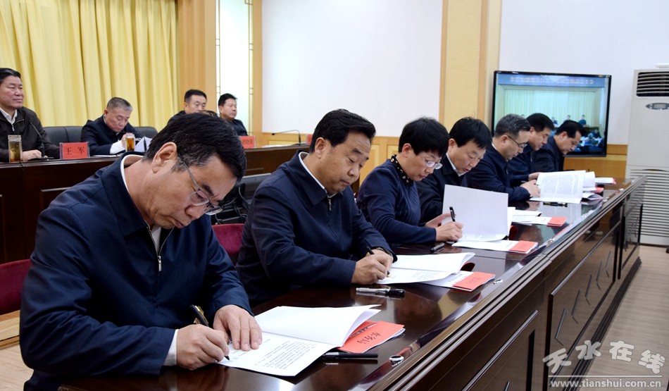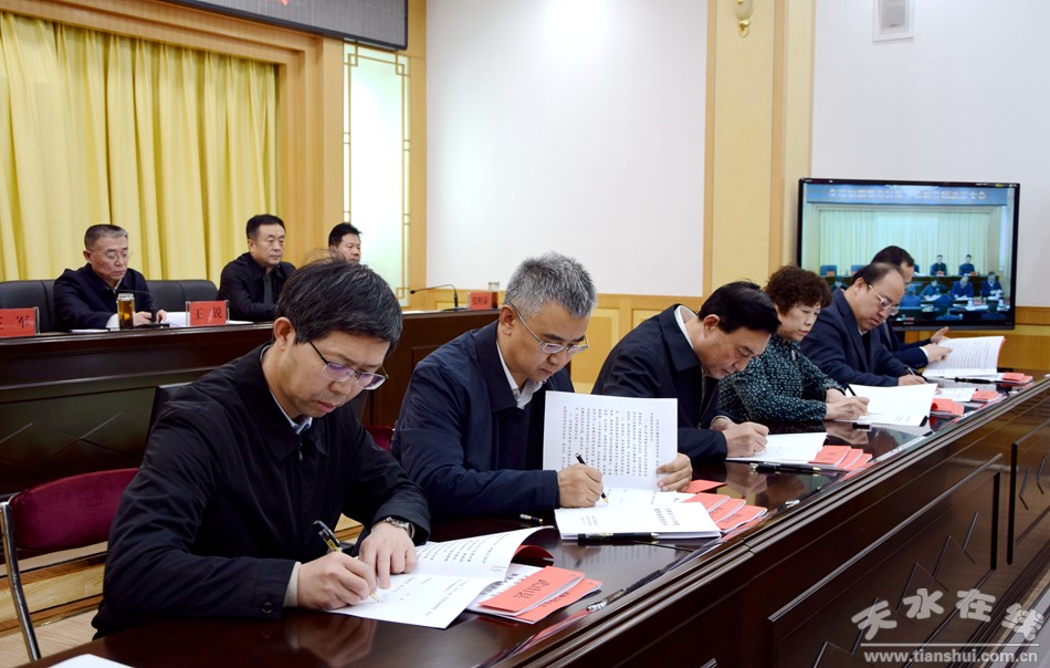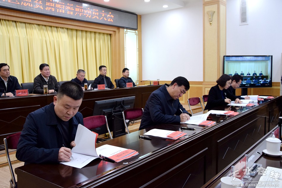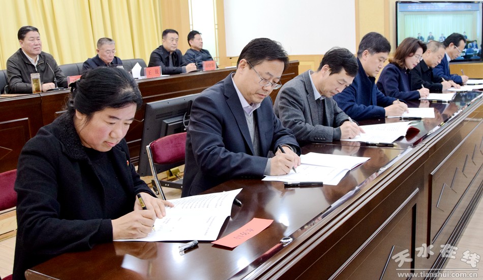 会上,市委市政府和10位市领导、7个县区、24个市直行业部门签订了2019年度脱贫攻坚责任书;4个市直部门、3个深度贫困县区、2个镇、3个村的负责同志作了表态发言。