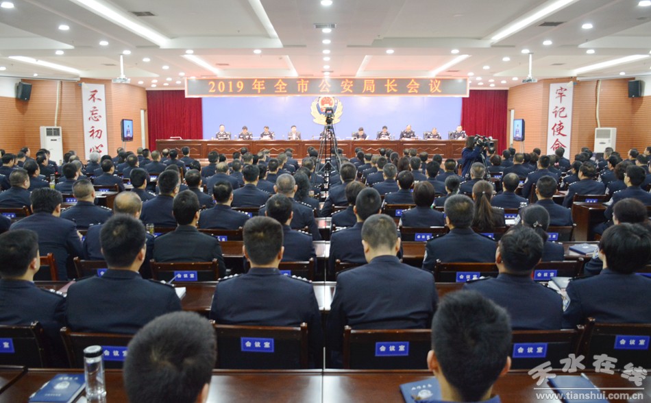 马瑛强调,2019年全市公安机关要高举习近平新时代中国特色社会主义思想伟大旗帜,围绕“践行新使命、忠诚保大庆”主题主线,强化“忠诚敬业高于一切、公正为民支撑一切、质效结果说明一切”工作理念,紧盯“扫黑除恶、整训队伍、夯实基础”三项重点,扭住“矛盾纠纷大排查、安全隐患大排除、基本信息大采录、基础数据大核准、社区警务大夯实”五个抓手,推进“龙头警务、社区警务、智慧警务、基础警务、人才警务”五大工程,积极投身三大攻坚战,竭力打好公安主动仗,强势维稳,强力破案,全面防控,全力服务,实现可防性刑事案件明显下降、电信网络诈骗案件明显下降、治安案件明显下降、道路交通事故明显下降,打击质效显著提升、服务质量显著提升、群众安全感显著提升、社会满意度显著提升“四降四升”目标,致力少发案、少损失、少伤痛,竭力为民守护安宁、为民排忧解难、为民伸张正义,以高质量平安护航天水经济社会高质量发展。