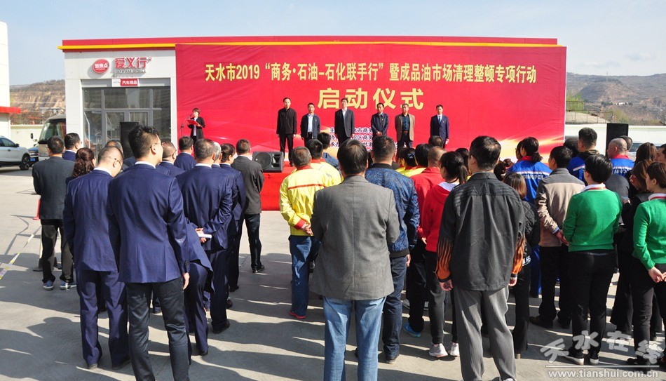 4月3日,天水市2019“商务—石油石化联手行”消费促进活动暨成品油市场清理整顿专项行动活动在麦积区三马路中石油加油站隆重举行。该项活动由天水市商务局主办,麦积区商务局协办,中石油甘肃天水销售分公司、中石化天水公司承办。市商务局局长马小龙,市商务局副局长王晓勇,中石油甘肃天水销售分公司党委书记、经理王佳平、中石化天水公司总经理周绪开及相关单位负责人参加了启动仪式。