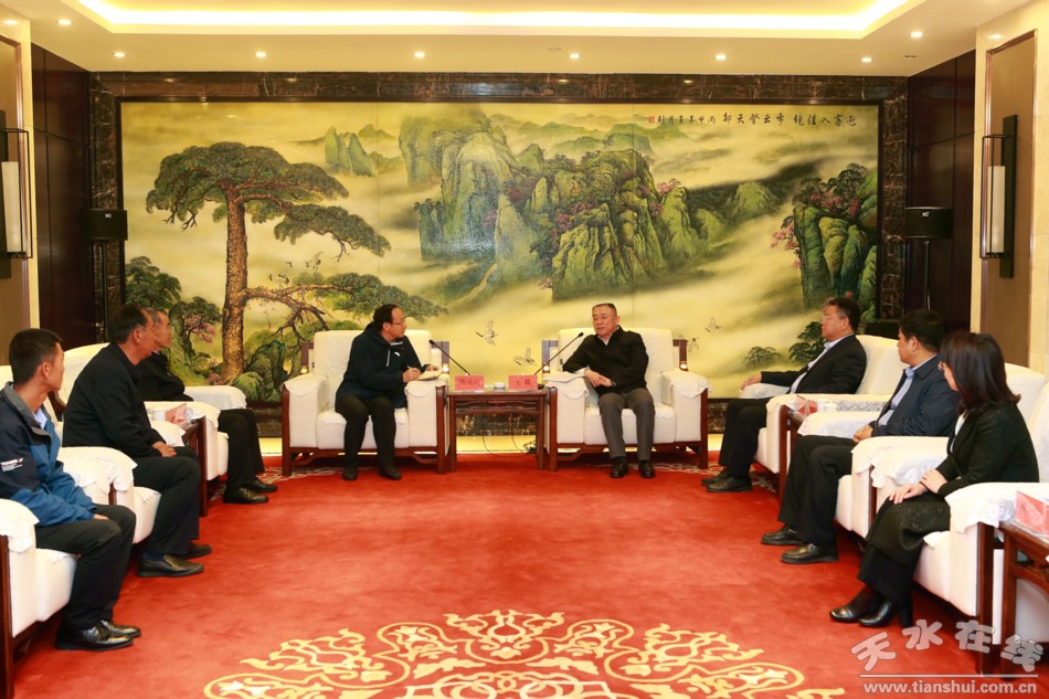 5月8日上午,天水市委书记王锐在天水宾馆会见了“时代楷模”——古浪县八步沙林场“六老汉”三代人治沙造林先进群体事迹报告宣讲团全体成员。市委常委、宣传部部长张建杰一同会见。