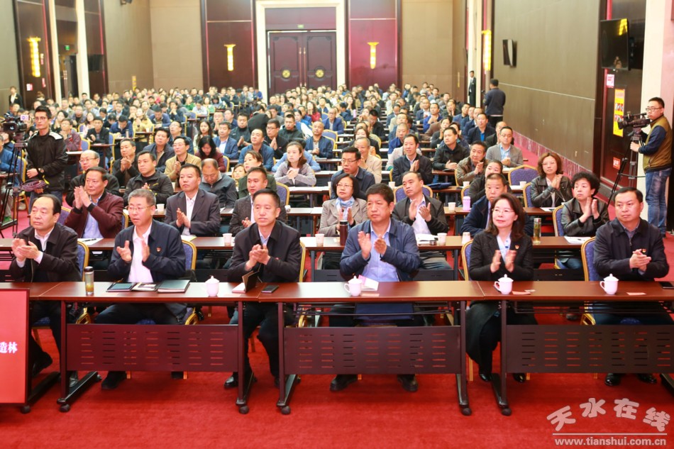 5月8日上午,“时代楷模”古浪县八步沙林场“六老汉”三代人治沙造林先进群体事迹报告会在天水宾馆举行。市领导王锐、宫辉、张建杰、安志宏、王晓琴、马瑛、苏定武、郭明兴和市直及驻市各部门、各人民团体、社会各界代表共计400人现场聆听宣讲。