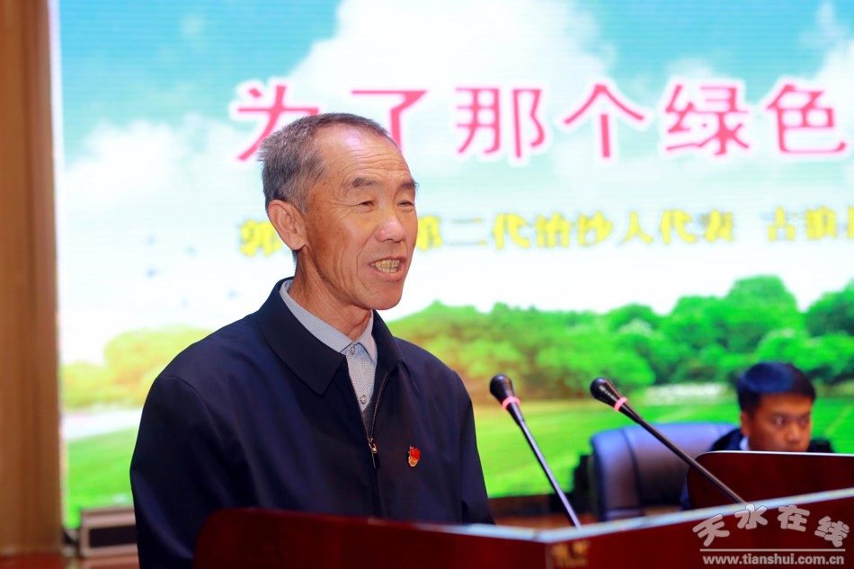 (第二代治沙人代表、八步沙林场场长郭万刚作《为了那个绿色的承诺》的报告 )