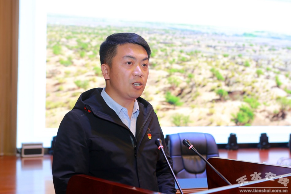 (第三代治沙人代表、八步沙林场技术员陈树君作《让青春在八步沙闪光》的报告)