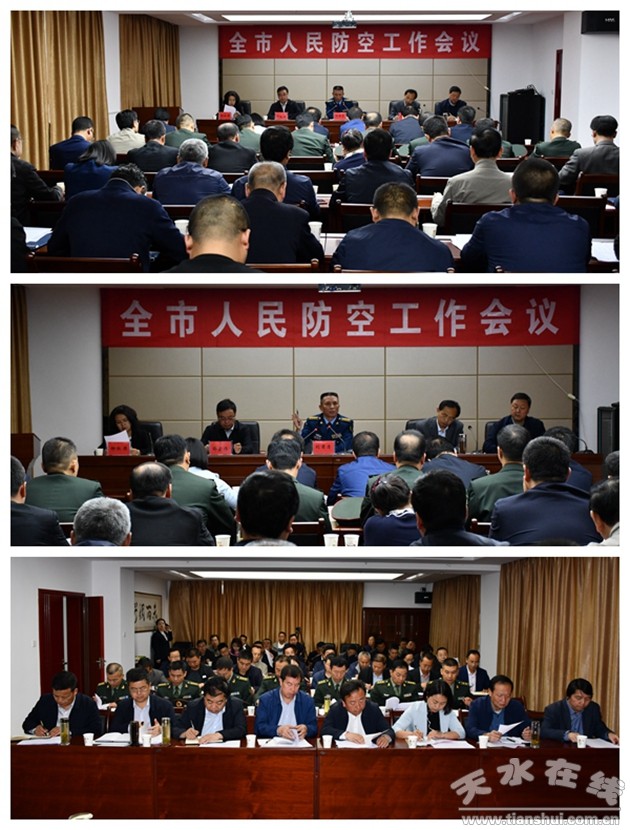 5月10日下午,天水市召开2019年人民防空工作会议。会议以习近平新时代中国特色社会主义思想为指导,深入贯彻党的十九大和十九届二中全会、三中会议精神,深入贯彻落实习近平总书记对人防工作的重要指示精神,全面落实甘肃省人民防空工作暨全面从严治党工作会议精神、市委七届七次全会暨全市经济工作会议精神和国家人防办2019年度工作筹划对接活动要求,总结2018年人防工作,安排部署2019年工作任务。天水市委常委、军分区司令员刘甫清,市长助理李敬峰,市纪委监委派驻市住建局纪检监察组组长柳红果出席会议并讲话,市政府副秘书长邵宏伟主持会议,市人防办党组书记、主任蔡虎林作人民防空工作报告。