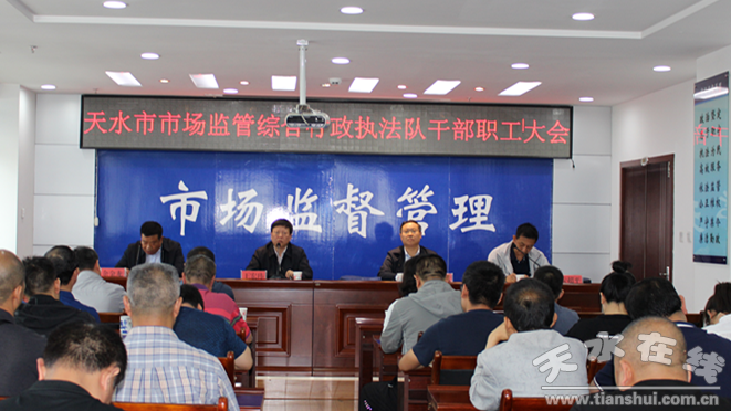 6月11日,天水市市场监管综合行政执法队召开干部职工大会,宣布主要领导调整的决定,余金龙同志任市市场监管综合行政执法队队长,黎映广同志不再担任市市场监管综合行政执法队队长职务。市市场监管局党组书记、局长王宏玮出席会议并讲话,市市场监管局副局长贾文斌主持会议。