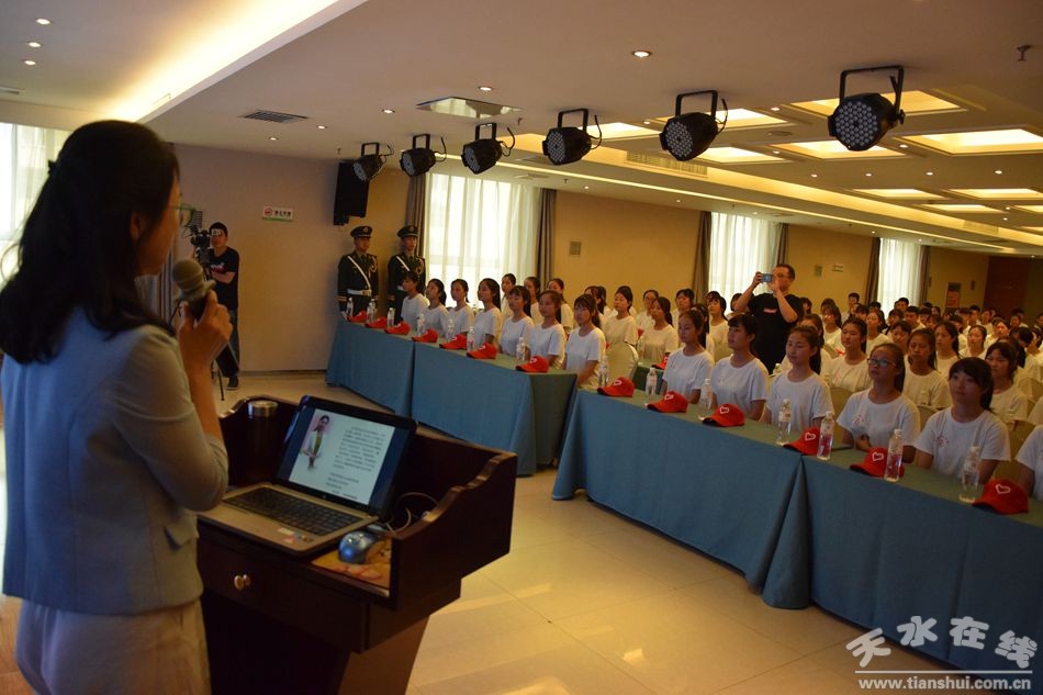 会上,青年志愿者首先进行了宣誓,随后对青年志愿者进行了礼仪和现场突发事件的培训。