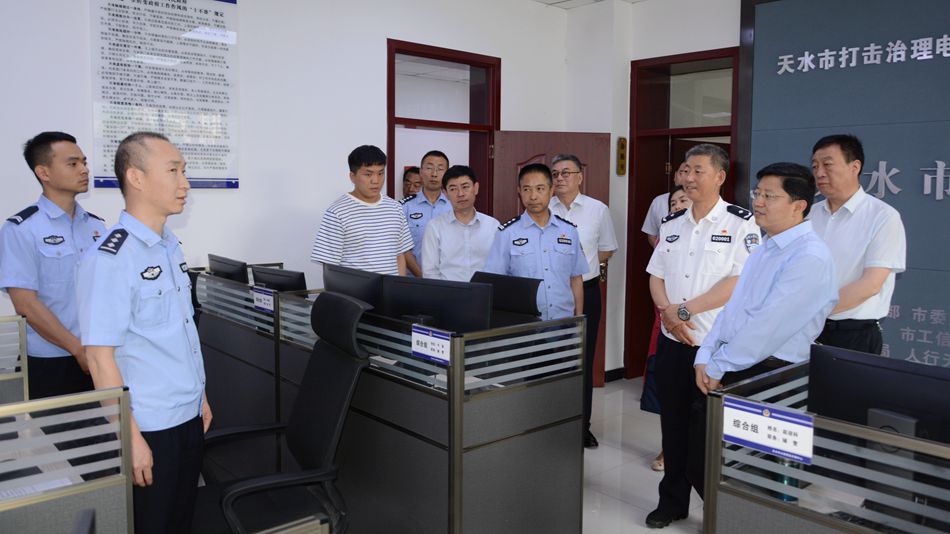督导组一行先后深入天水市公安局扫黑除恶线索核查中心、办案基地、反电诈中心和合成作战指挥中心,详细了解市公安局扫黑除恶专项斗争开展情况。在随后召开的汇报会上,督导组对天水市公安局开展扫黑除恶专项斗争取得的成绩、全市公安民警精神面貌以及开展专项斗争的信心决心等给予充分肯定。