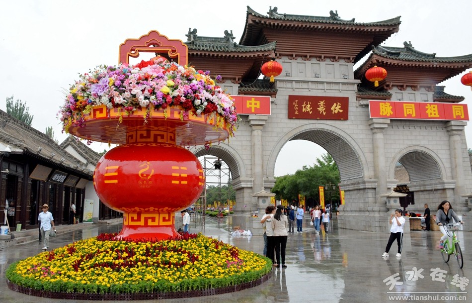 天水在线6月18日摄影报道 2019(已亥)年公祭中华人文始祖伏羲大典即将于6月22日在古城天水隆重举行,同时第30届天水伏羲文化旅游节也将拉开大幕。6月18日的天水城,已经是花团锦簇喜迎盛会的节奏。