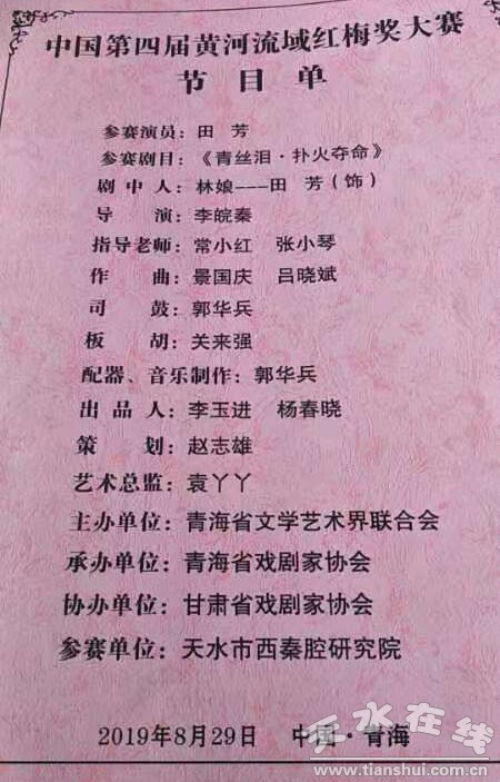 天水市西秦腔研究院国家二级演员田芳参赛剧目《青丝泪-扑火夺命》荣获大赛“一等奖”,再次为我市赢得荣誉!