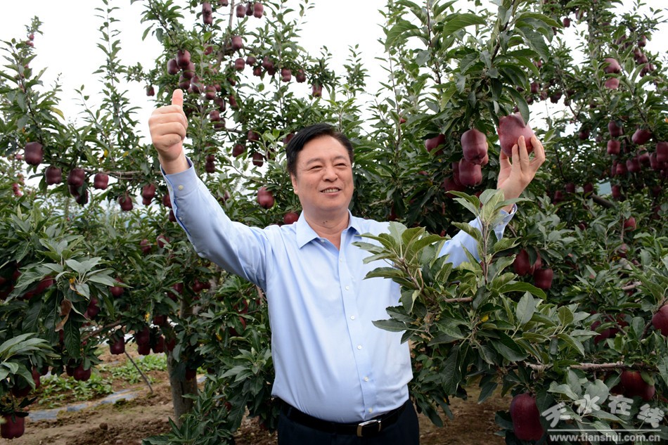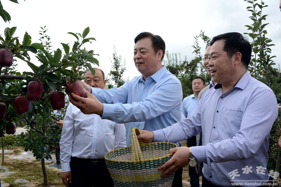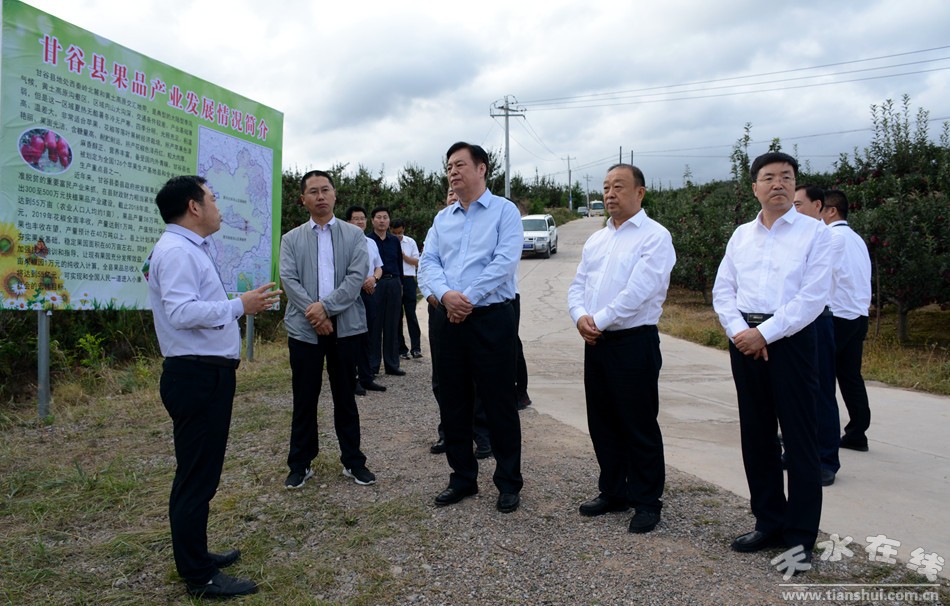 (在甘谷县磐安镇侯家山村苹果产业种植基地考察)