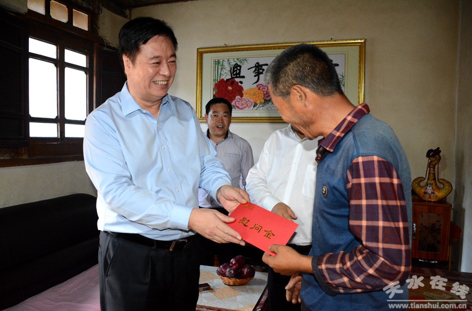 (在甘谷县磐安镇侯家山村慰问贫困户杨兴顺)